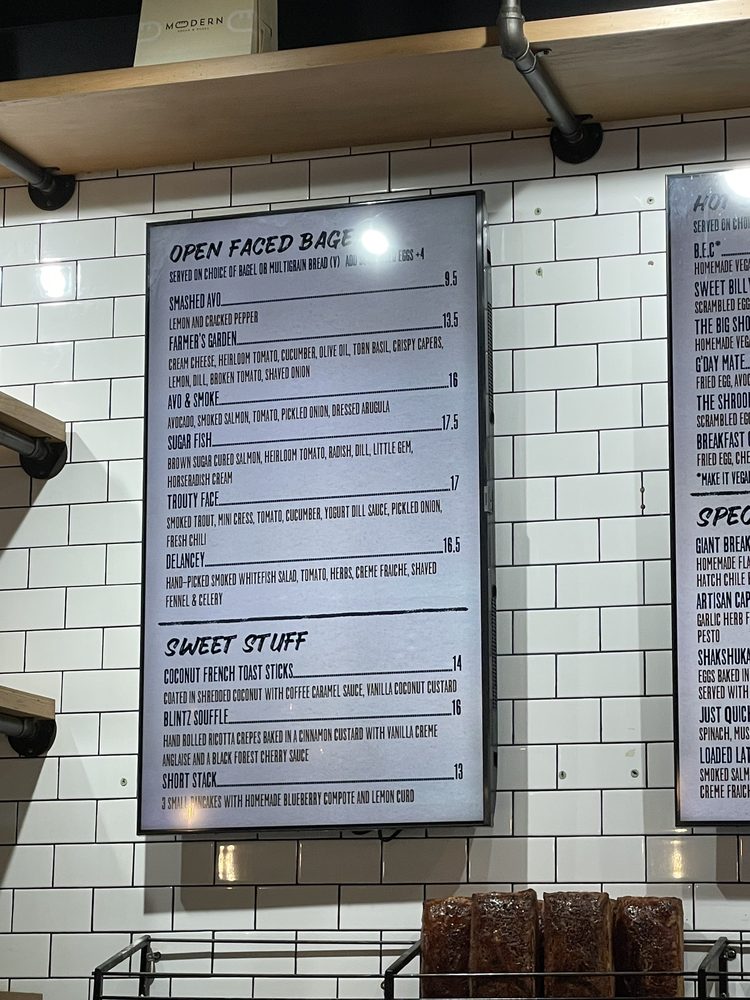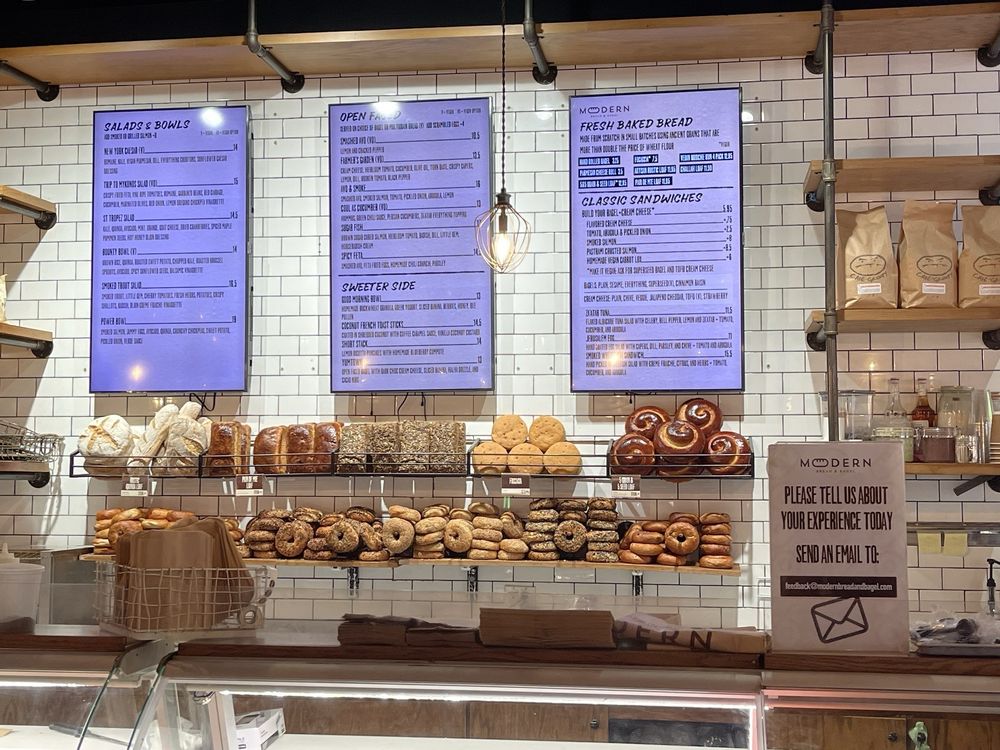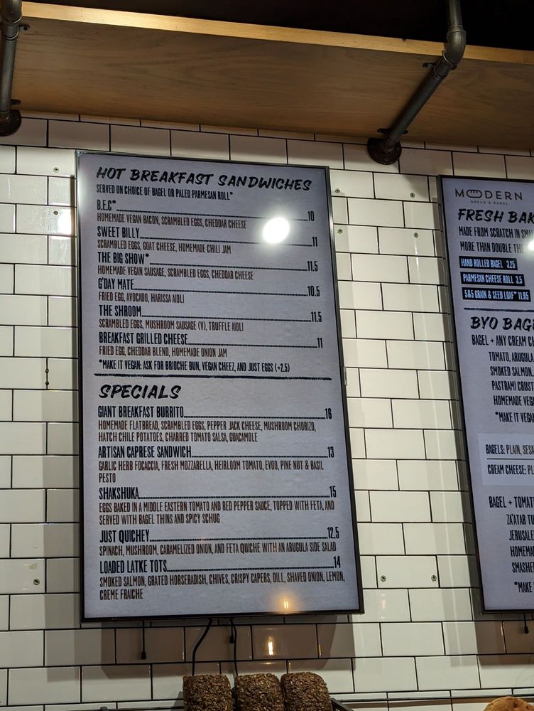 Modern Bread and Bagel, located in New York City, offers a wide range of menu options catering to various dietary needs such as gluten-free and vegan. The October specials include a Pumpkin Bagel with Pumpkin Spice Latte Cream Cheese, and an Apple Pie Babcha slice filled with apple cinnamon goodness. Their signature pastry lattes, like the Raspberry Linzer Tart Latte and Chocolate Babka Latte, are a must-try. The build-your-own bagel options allow you to customize your bagel experience with choices of toppings and spreads. Customers praise the delicious bagels, flavorful cream cheeses, and friendly staff. The cozy atmosphere and fast-moving lines make it a great spot to grab a quick bite or relax with a hot latte. Modern Bread and Bagel truly delivers an authentic NYC bagel experience with a modern twist.